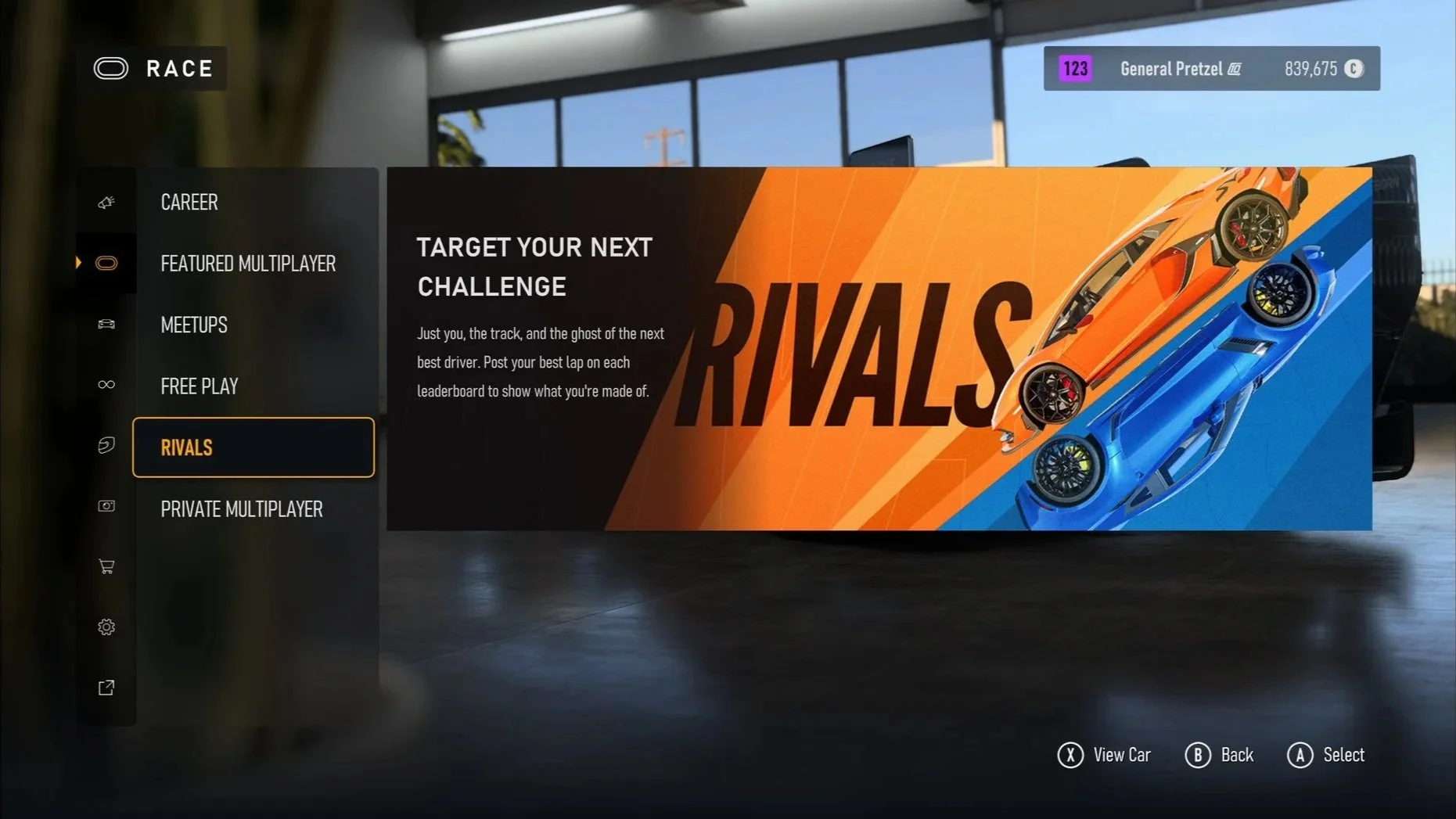 Rivals was one of the lightest touch game modes we had in each of our updates, as it largely just entailed picking a great car & track combination, configuring weather and time of day, and the rest was largely templatized in a way that required minimal design effort each month.